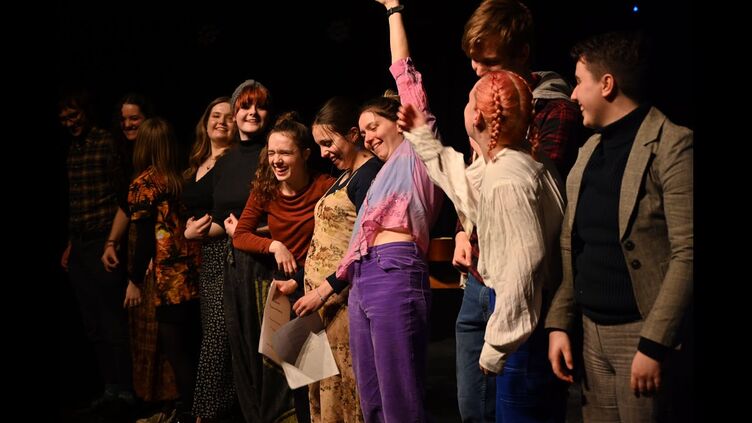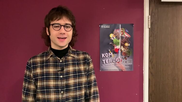 "The idea for Kom Terug! came on a snowy day in January", says director Filip De Ceuster. "After four weeks of writing the script together with the students, rehearsals, a technical run-through and a dress rehearsal, the audience entered and the lights went on. For an hour or so the Low Countries seemed to have crossed the Channel. The painted brickwork and red velvet seats of the church that now houses the Drama Studio transformed into skies of clouds and cotton.