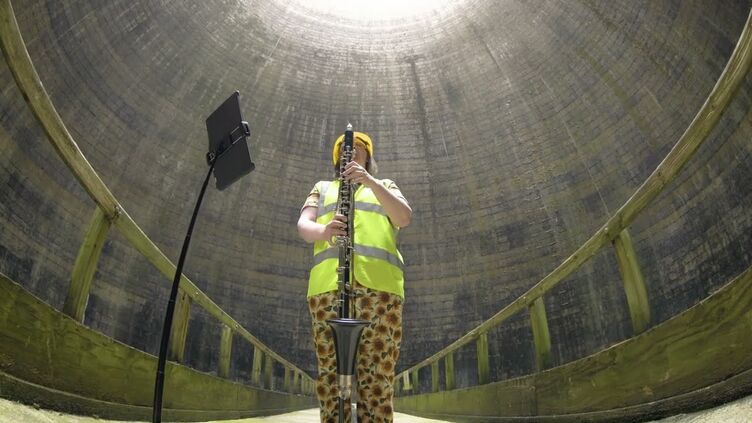 Ratcliffe-on-Soar power station’s cooling towers became the unusual stage for a new musical performance by bass clarinet specialist Dr Sarah Watts, Director of Performance at the University of Sheffield, as the station undergoes decommissioning.